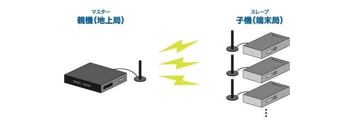 工場の生産設備やラインからは、警報や稼働状態を伝える接点信号が出力されています。この、設備管理者が工場内の状態を知るための大事な情報を、無線化してはいかがでしょう。1カ所の信号を1カ所に送る「1対1伝送」のほか、複数の場所から1カ所に送る「1対N伝送」や、通信しづらいところを中継する「中継伝送」も可能です。